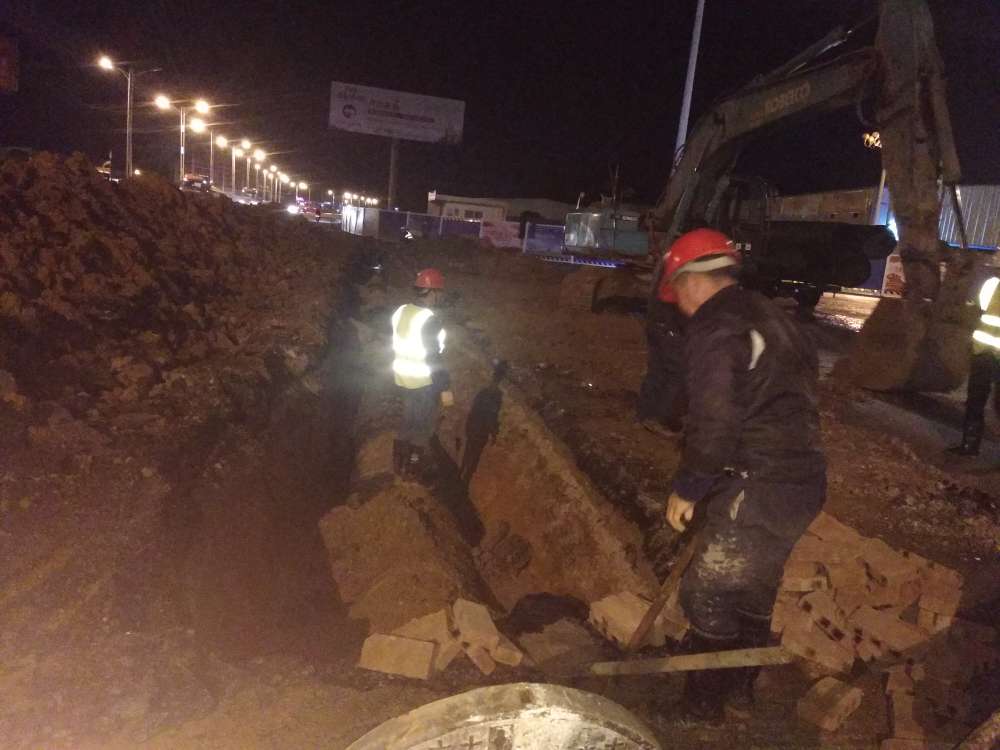 圖為連夜加班開挖溝槽現(xiàn)場(chǎng)