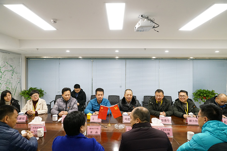 圖為桂林醫(yī)學(xué)院院長(zhǎng)助理覃克強(qiáng)一行向新城投資集團(tuán)贈(zèng)送錦旗
