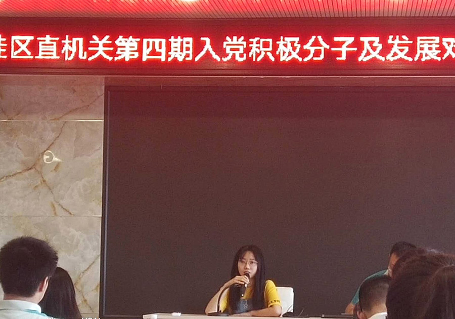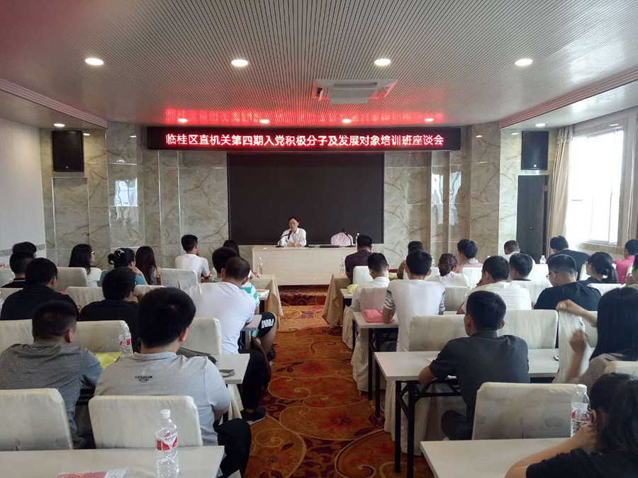 2018年5月28日至5月31日臨桂區(qū)直屬機關工委舉辦桂林市臨桂區(qū)直機關第四期入黨積極分子及發(fā)展對象培訓班,旨在進一步加強對入黨積極分子的培養(yǎng)、教育和考察,提高入黨積極分子和發(fā)展對象的思想政治素質(zhì)。新城投資集團共計八位員工參加此次培訓,分別是秦輝、韋丹陽、段靜、梁慧穎、尹于、張文婷、秦建華、秦年息。