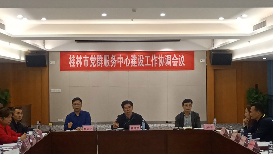 2019年5月9日,市委組織部常務副部長、市黨群服務中心建設工作領導小組副組長蔡澤軍在新城投資集團1001會議室主持召開桂林市黨群服務中心建設協(xié)調(diào)會議。臨桂新區(qū)工委副書記、管委會副主任、市黨群服務中心建設工作領導小組副組長唐標明出席會議。