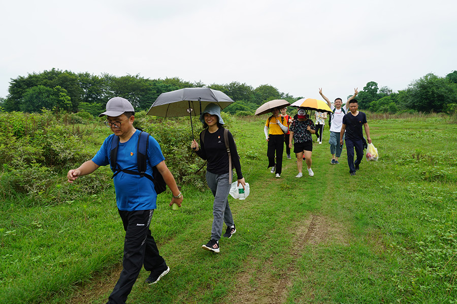 大雨過后,烈日當空,地表溫度迅速上升,空氣中的水蒸氣增多,汗液難于蒸發(fā),面對濕熱天氣,大家義無反顧的前進,衣服濕了又干,干了又濕。中午14點,隊伍進入一片樹林,起初地勢較為平坦、道路開闊……漸漸地,地面開始凹凸不平,有了越來越多的水坑,道路開始變窄,一條小溪攔住了隊伍。大家紛紛脫鞋下水,手拉著手、攙扶著后面的同志在溪水中行進,本著不能讓任何一個同志掉隊的信念,整個團隊相互鼓勁、相互扶持,克服困難,攜手踏過這段溪流。