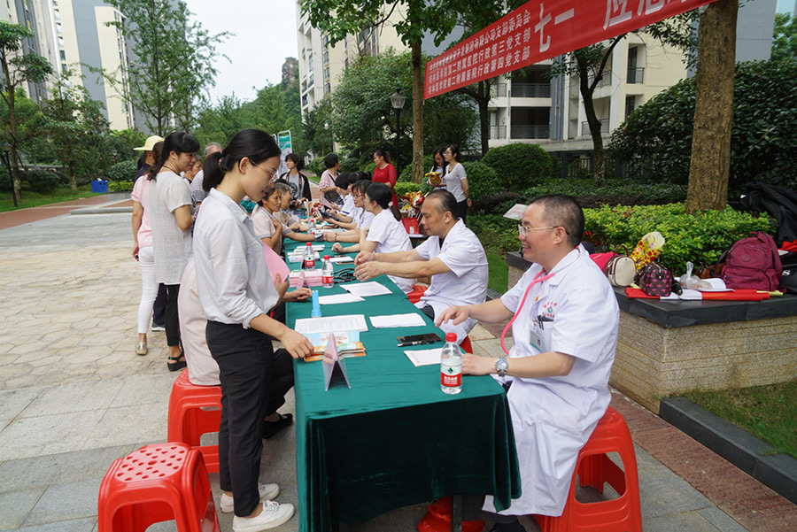 為充分發(fā)揮黨員志愿者的先鋒模范帶頭作用,增強(qiáng)轄區(qū)居民對(duì)健康的關(guān)注,加強(qiáng)對(duì)夏季防病的健康意識(shí),6月29日(周六)上午,新城投資集團(tuán)黨支部和桂林醫(yī)學(xué)院第二附屬醫(yī)院行政第三、第四黨支部在桂林市臨桂區(qū)新城國(guó)奧小區(qū)舉行“應(yīng)急救護(hù)及健康知識(shí)進(jìn)社區(qū)”主題黨日活動(dòng)。