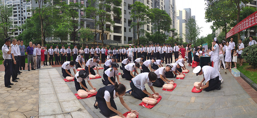 活動(dòng)現(xiàn)場(chǎng),應(yīng)急救護(hù)老師現(xiàn)場(chǎng)進(jìn)行教學(xué),從應(yīng)急救護(hù)的重要性入手,講解與演示并重,理論與操作結(jié)合,詳細(xì)講解了心肺復(fù)蘇術(shù)、呼吸道異物梗阻和溺水救護(hù)等方面的急救知識(shí)。并用人體模具為大家演示急救步驟和操作手法,指導(dǎo)在場(chǎng)人員對(duì)心肺復(fù)蘇術(shù)開(kāi)展實(shí)操訓(xùn)練,同時(shí)結(jié)合實(shí)際工作中的案例手把手向大家傳授急救手法和注意事項(xiàng),對(duì)實(shí)操人員出現(xiàn)的錯(cuò)誤動(dòng)作進(jìn)行細(xì)心的指正與解說(shuō)。宏謀物業(yè)公司的護(hù)衛(wèi)隊(duì)員、船員,客服近百人、分5次參加了應(yīng)急救護(hù)培訓(xùn)。