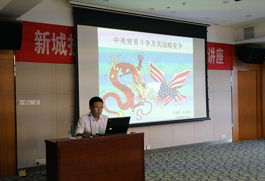 為加強(qiáng)集團(tuán)公司黨員干部對當(dāng)前形勢與政策相關(guān)內(nèi)容的學(xué)習(xí)和理解,增強(qiáng)愛國熱情,更好地從國際、國家形勢政策層面認(rèn)知公司發(fā)展現(xiàn)狀,10月15日,新城投資集團(tuán)黨總支在集團(tuán)辦公大樓1001會議室開展了形勢政策教育專題講座。本次講座邀請了中共桂林市委黨校講師王孫旺為大家講授《中美貿(mào)易斗爭及其戰(zhàn)略競爭》。新城投資集團(tuán)黨總支籌備領(lǐng)導(dǎo)小組副組長、副總經(jīng)理鄧仁友主持講座。新城投資集團(tuán)黨總支籌備領(lǐng)導(dǎo)小組組長、董事長周道林參加講座并作總結(jié)發(fā)言。集團(tuán)公司班子成員、黨員代表、中層管理干部、主管人員參加學(xué)習(xí)。