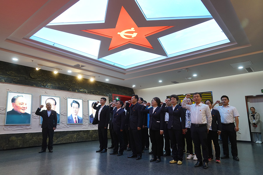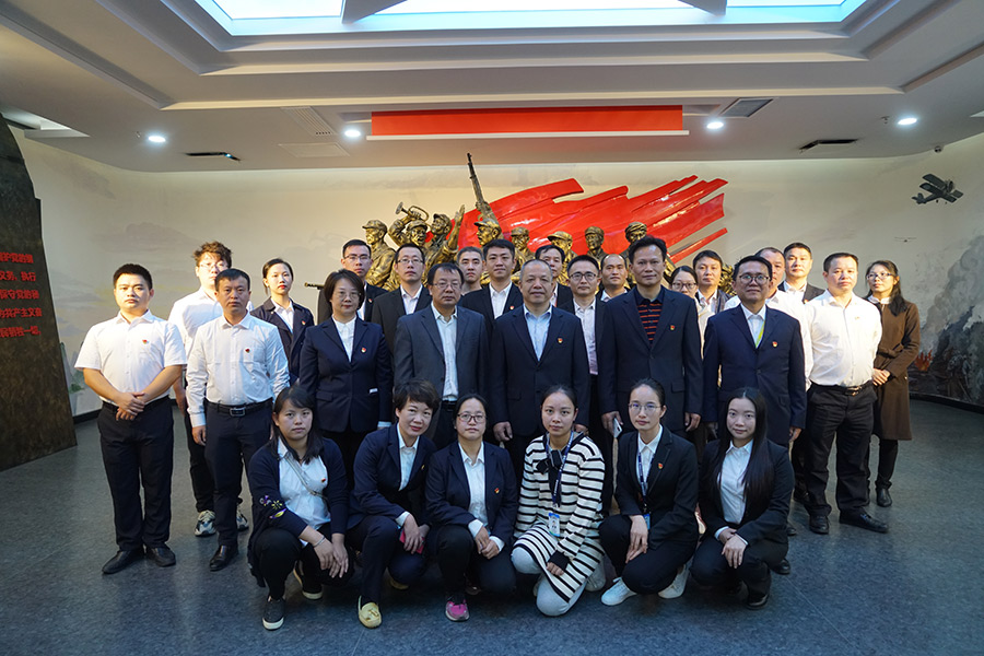 活動(dòng)當(dāng)天,大家參觀了位于新城投資集團(tuán)辦公大樓一、二樓的桂林市黨群服務(wù)中心。講解員為黨員們一一講解了中心的定位、功能及各展區(qū)的內(nèi)容,黨員們認(rèn)真聆聽講解員的講解,依次參觀了桂林市黨員志愿者服務(wù)總站、黨群業(yè)務(wù)受理區(qū)和黨組織活動(dòng)區(qū)等展廳。體驗(yàn)了“健康小屋”“城市書吧”“i游桂林”“時(shí)光隧道”“微笑墻”“非遺文化屋”“紅色影院”“電子翻書”等功能設(shè)施。通過觀看3D幻影成像《湘江戰(zhàn)役》和微電影《廖俊波》,真切感受了先輩們踐行初心拋頭顱、灑熱血的壯舉及廖俊波同志對(duì)黨忠誠(chéng)、無私奉獻(xiàn)的高尚品質(zhì)。在以湘江戰(zhàn)役為歷史背景而制作的雕塑前,全體黨員合唱《國(guó)際歌》《中華人民共和國(guó)國(guó)歌》,重溫入黨誓詞。