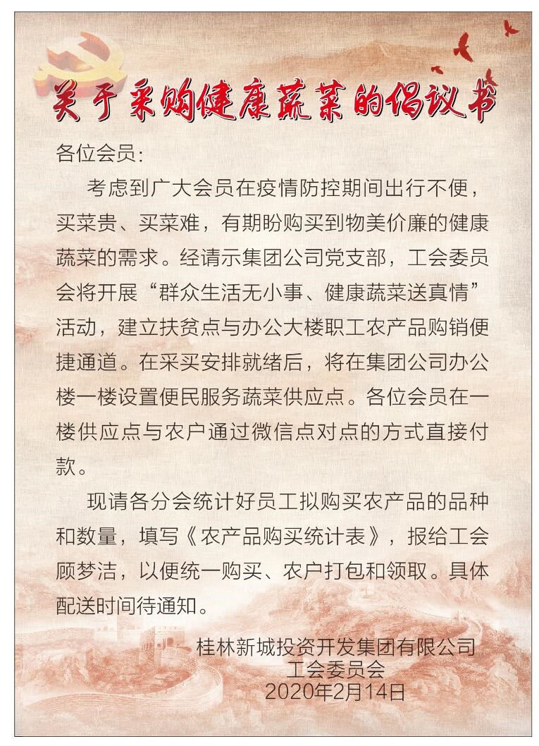 “你搶著菜了嗎?”已經成為新冠肺炎疫情下,除“你搶著口罩了嗎?”外另一句流行的打招呼方式。而居家隔離、不敢出門、菜市場貨物短缺出現(xiàn)的買菜貴、買菜難等等問題隨之而來。集團公司工會想職工之所想,始終關心職工冷暖,把“新鮮蔬菜配送到辦公樓”的想法模式孕育而生。在集團黨支部的指導下,工會委員會主動聯(lián)系周邊鄉(xiāng)鎮(zhèn)的貧困農戶,組織開展“群眾生活無小事、健康蔬菜送真情”點對點活動,即開通扶貧點農戶的農產品與辦公大樓職工的購銷便捷通道,這種做法不僅充分發(fā)揮了工會聯(lián)系群眾的橋梁紐帶作用,把密切聯(lián)系群眾的優(yōu)勢轉化為疫情防控的優(yōu)勢,而且還搭建起了一座防疫與扶貧的愛心橋,將“群眾利益無小事,一枝一葉總關情”的工會服務理念落在了實處。
