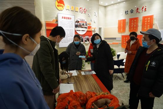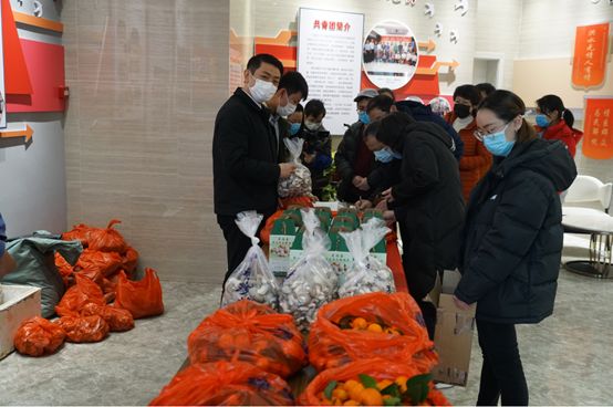 2月20日下午,來自六塘、中庸、宛田各鄉(xiāng)鎮(zhèn)的紅薯、大白菜、香菇、平菇、雞蛋等農產品被送到達新城投資集團辦公樓一樓。