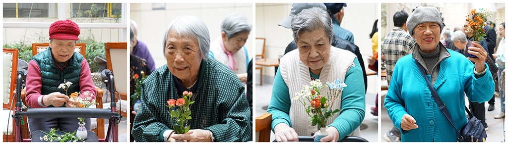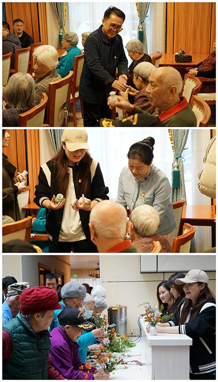 黨課結(jié)束后,老人們在黨員志愿者的陪伴下開展插花活動。志愿者們將一個個小巧精致的花瓶親手送到每一位老人的手中。在一片歡聲笑語中,大家一邊享受插花樂趣,一邊分享彼此心得體會,攜手創(chuàng)作出一件件精美的插花作品??粗约河H手制作的作品,老人們臉上流露出深深的成就感和自豪感。