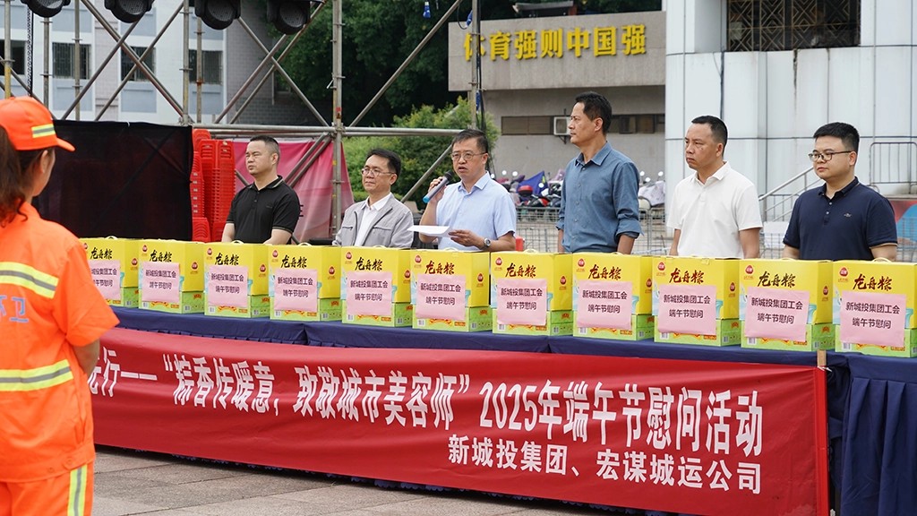 為深入踐行習(xí)近平總書記“以人民為中心”“勞動最光榮”的指導(dǎo)思想,切實(shí)把組織關(guān)懷送到基層勞動者心坎上,進(jìn)一步提升環(huán)衛(wèi)職工隊(duì)伍的職業(yè)認(rèn)同感和幸福感,2025年5月29日端午節(jié)前夕,新城投集團(tuán)聯(lián)合宏謀城運(yùn)公司在秀峰區(qū)中心廣場舉辦“粽香傳暖意,致敬城市美容師”端午節(jié)慰問活動。此次活動得到市城管委,秀峰區(qū)政府、城管局、環(huán)衛(wèi)站的大力支持與指導(dǎo)。市城管委黨組成員、副主任蔣毅出席活動。受新城投集團(tuán)黨委書記、董事長朱毅委托,黨委副書記、紀(jì)委書記、工會主席譚力源代表集團(tuán)黨委、領(lǐng)導(dǎo)班子及全體職工,向奮戰(zhàn)在環(huán)衛(wèi)一線的干部職工致以節(jié)日問候。
