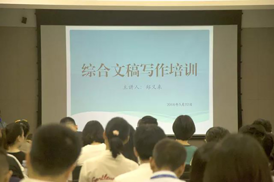 為進(jìn)一步提高集團(tuán)公司員工公文寫作水平,規(guī)范公文管理,提高辦事效率和辦事能力,2018年5月22日,臨桂新區(qū)管委會(huì)與新城投資集團(tuán)聯(lián)合舉辦了一次綜合文稿寫作培訓(xùn)。集團(tuán)公司領(lǐng)導(dǎo)對(duì)此次培訓(xùn)高度重視,要求公司各部門派出材料負(fù)責(zé)人和部門骨干參加培訓(xùn),并要做到學(xué)有所思,思有所悟,悟有所行,用好公司發(fā)展的“推進(jìn)器”,助力公司發(fā)展邁向新臺(tái)階。
