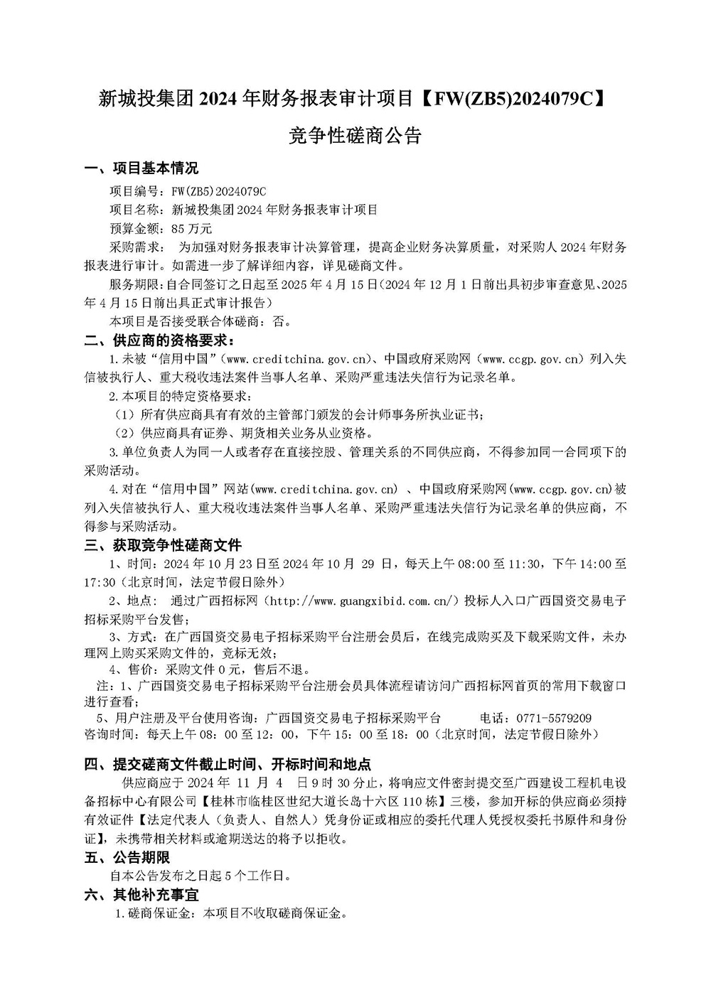 新城投集團(tuán) 2024 年財(cái)務(wù)報(bào)表審計(jì)項(xiàng)目【FW(ZB5)2024079C】 競爭性磋商公告