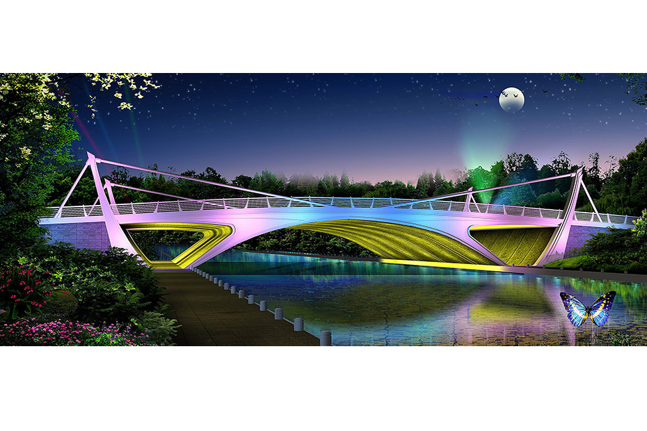 新龍橋由上海市政交通設(shè)計(jì)研究院有限公司設(shè)計(jì),于2016年10月30日開工建設(shè)。橋梁為鋼筋混凝土斜腿鋼構(gòu),橋臺(tái)采用鋼筋混凝土結(jié)構(gòu),橋身橫跨核心區(qū)水系沙溏河,長56米,寬47米,橋下的景觀游船河道42米,是連接新、老城區(qū)的重要樞紐橋梁